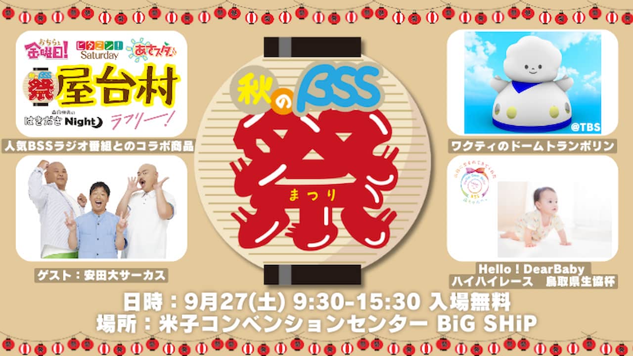 詳細 | 9/27(土)は米子市で「BSSまつり」開催!安田大サーカスや限定グルメが登場 |