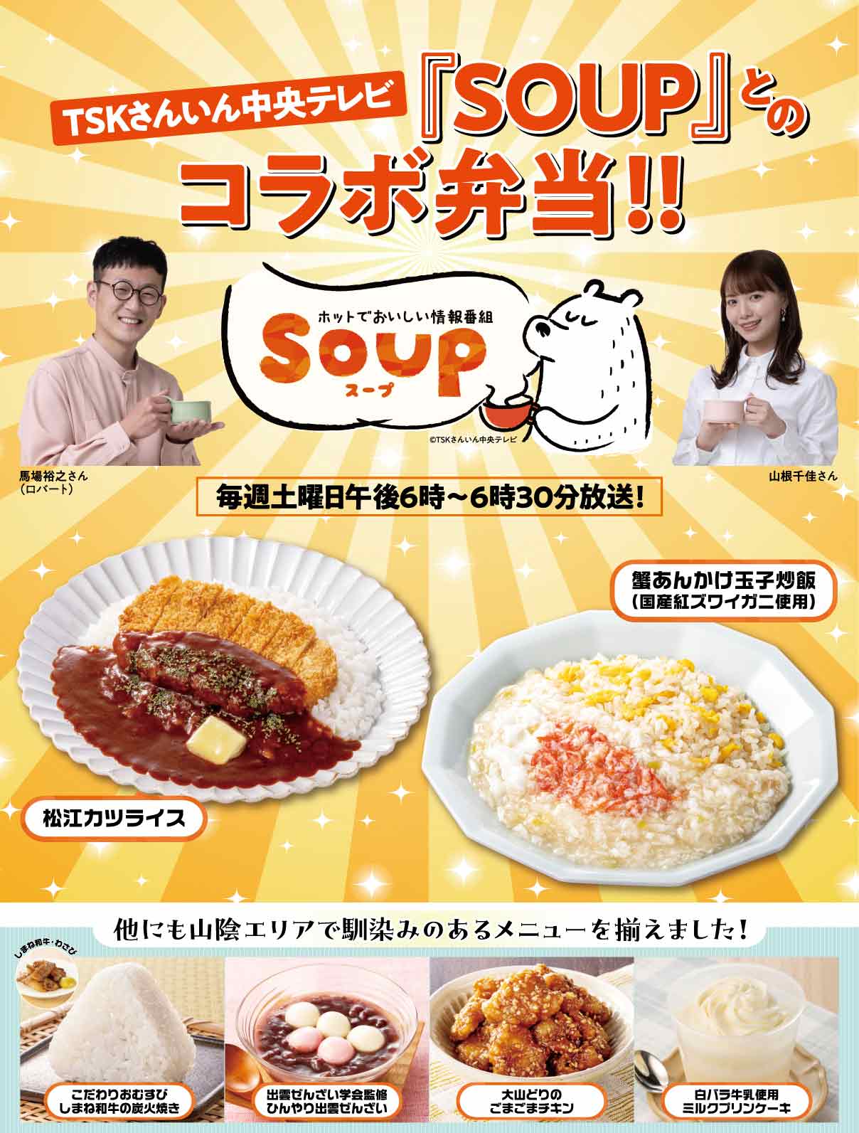 TSKさんいん中央テレビの人気番組「SOUP」と「セブン-イレブン」がタッグを組んで、山陰の魅力がギュッと詰まったコラボ弁当を開発!