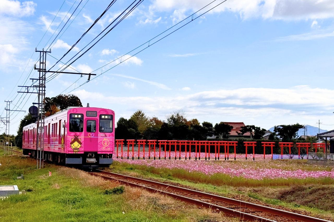 「一畑電車」が走り抜けるタイミングを狙って、ステキな写真を撮影してみて。
