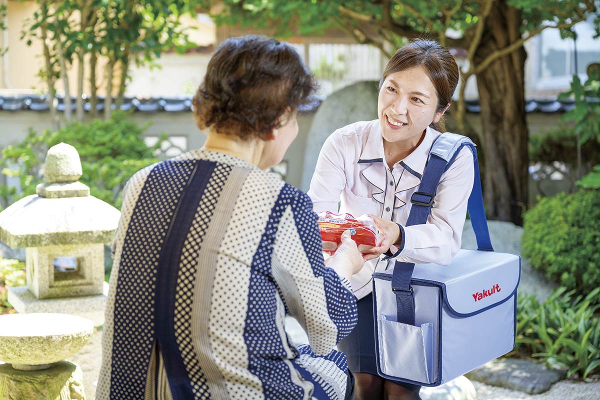 ネット通販全盛の時代、定期的に同じスタッフが訪問し、手渡しで商品を届けるスタイルは珍しくなりました。「一人暮らしのお客さまの場合、ヤクルトスタッフがご家族よりも多い頻度で会うことも。お客さまに寄り添う健康アドバイザーとしての意識も育てています」。強みを生かしつつ、新たなニーズも探っています。
