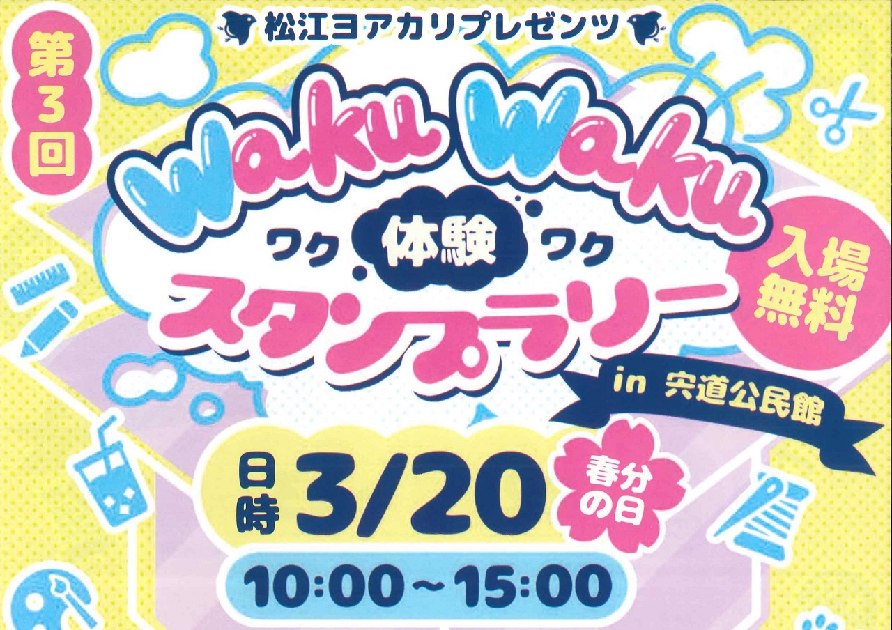 | 詳細 | ワクワク体験スタンプラリーin 宍道公民館(島根県松江市)の開催情報 |