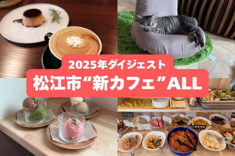 2025年に掲載した松江市の「新カフェ」まとめ。ビュッフェランチ、保護ネコカフェ、ジェラー…