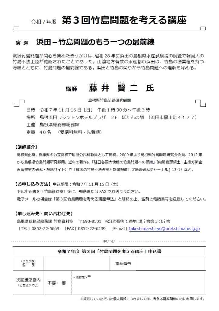【要申込】令和7年度 第3回竹島問題を考える講座