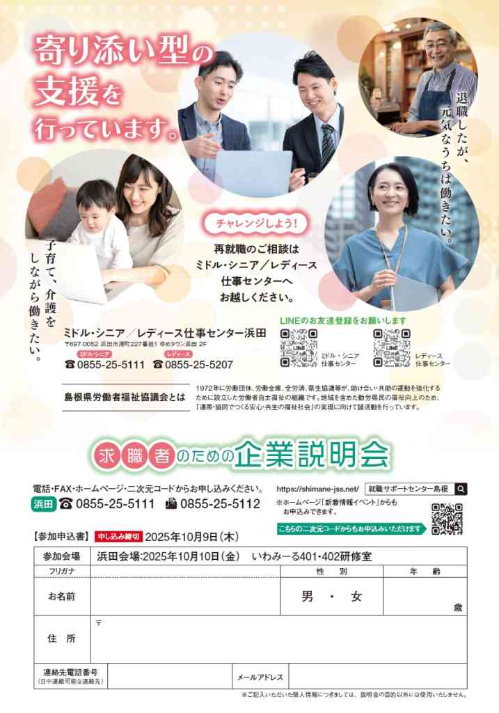 【要申込】求職者のための企業説明会(島根県浜田市)の開催情報