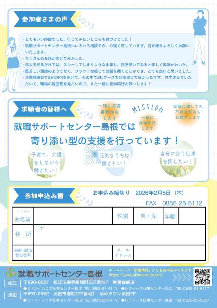 | お問い合わせ | 就職サポートセンター島根 |