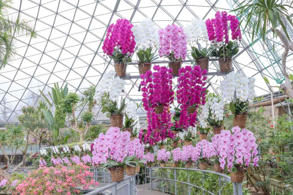 フラワードームには色とりどりのランが咲き誇り、華やかな香りと雰囲気を楽しめる。大人気スポットのコチョウランのトンネルやドレスも登場。オープニングにはランが当たるスペシャル抽選会などイベントも開催予定。