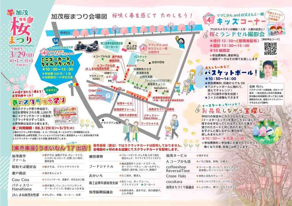 | 会場 | ネービルタウン/Aコープかも店駐車場/JAしまね加茂支店駐車場/中村川桜並木沿い |