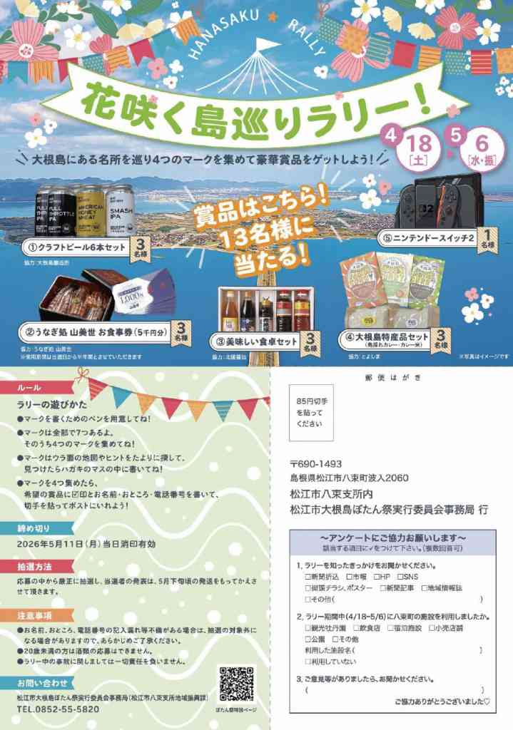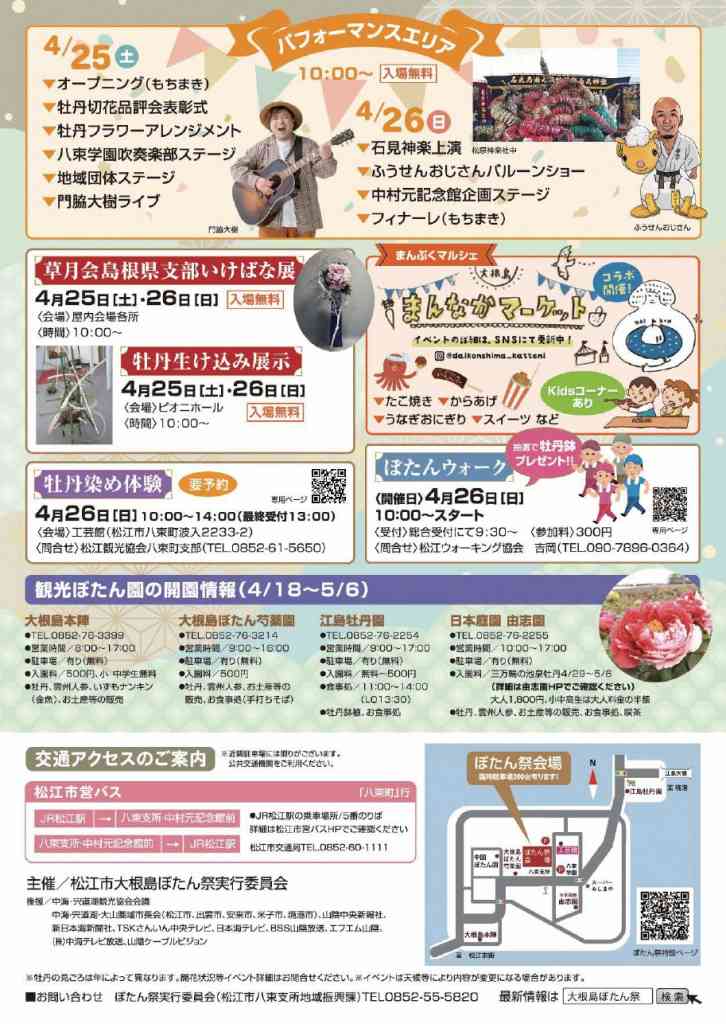| お問い合わせ | 松江市大根島ぼたん祭実行委員会(松江市八束支所地域振興課内) |