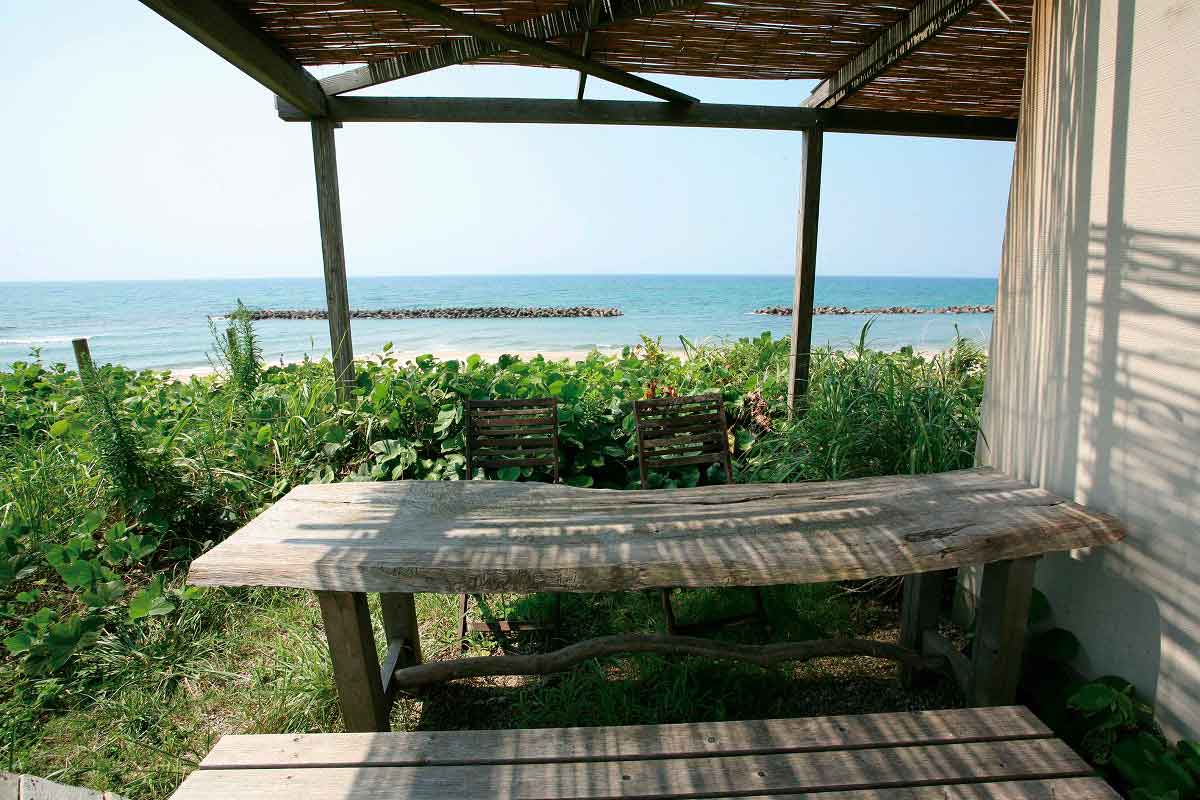 店舗横のテラス席からは、青い水平線、さざ波が打ち寄せる海岸などが一望でき、日常を忘れてボーッと過ごしたい時にピッタリの場所です。