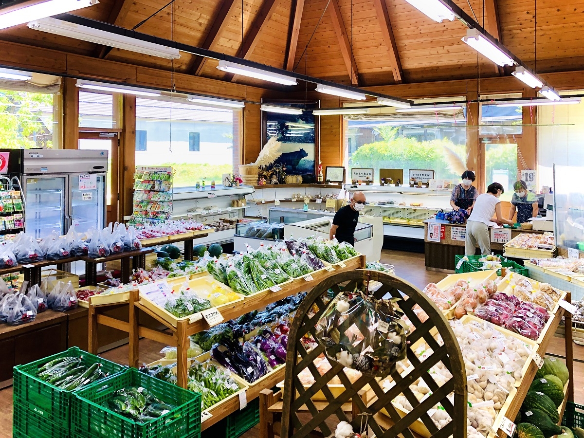 お隣は産直市「横田だんだん市場」。地域の方が育てた新鮮野菜などのお買物も一緒に楽しめます。