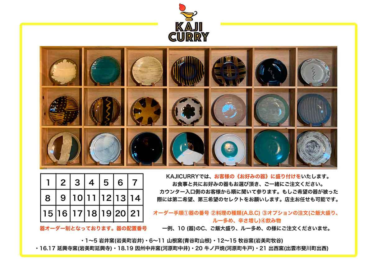 [鳥取市オープン]完全予約制!窯元の器が選べるカレー専門店『KAJICURRY』の要予約30食限定カレーランチが食べたい