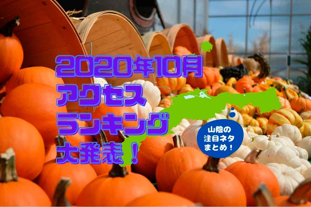 【2020年10月人気記事ランキング】山陰人が気になったネタまとめ20選!