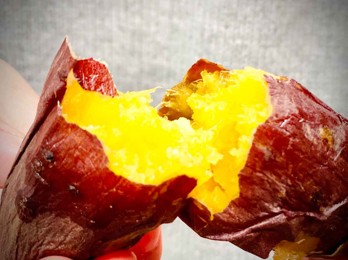 その名の通り、絹のようななめらかな食感と、蜜のたっぷりつまった甘~いサツマイモなんですよ~。