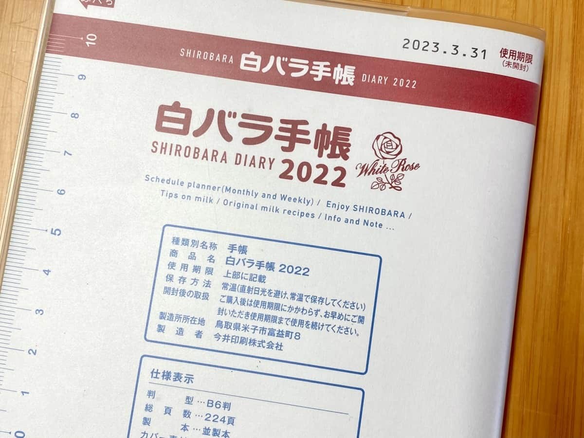 「白バラ手帳 2022-SHIROBARA DIARY-」は今年10月30日、今井出版から発売された2022年の手帳。言うまでもなく、白バラでお馴染みの大山乳業とのコラボグッズです。