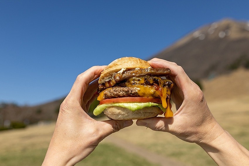 大山桝水スキー場前のフィールドステーション内にオープン。地元の人気パン屋『満てん』と共同開発したライ麦バンズに、黒毛和牛と国産豚を使用した肉汁あふれるパティ、また地元野菜を使った食べ応えバッチリなハンバーガーを提供。