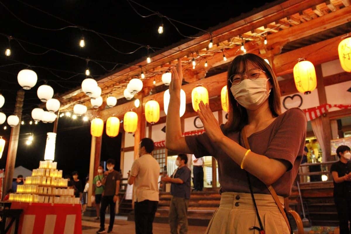 気が付けば輪の中の人も、外の人も、拍子をとって盆踊り。