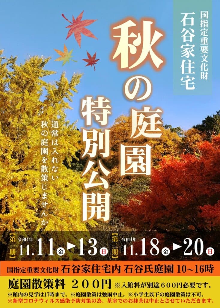 【令和4年度】秋の庭園特別公開(石谷家住宅HP) |