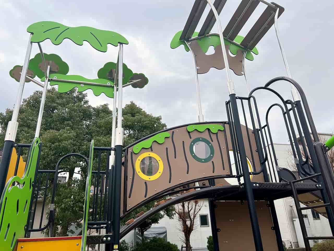 子どもからしたら、テンション上がっちゃう大きな遊具。よく見ると、遊具にも自然要素があるような・・・。