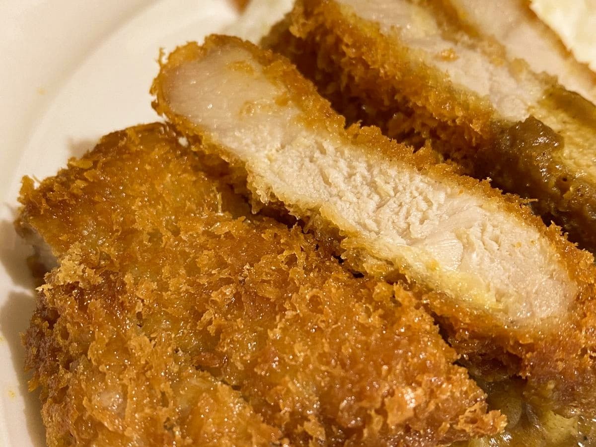 カツは揚げたてサクサク。脂は控えめでしつこくなく、カレーとの相性も抜群。