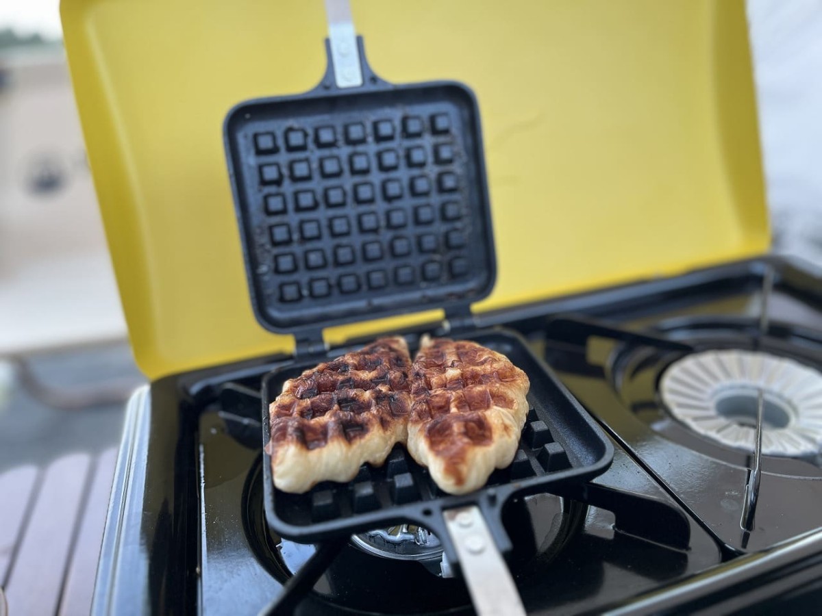 朝食は、クロッフル、卵、サラダ、スープ、コーヒーなど。