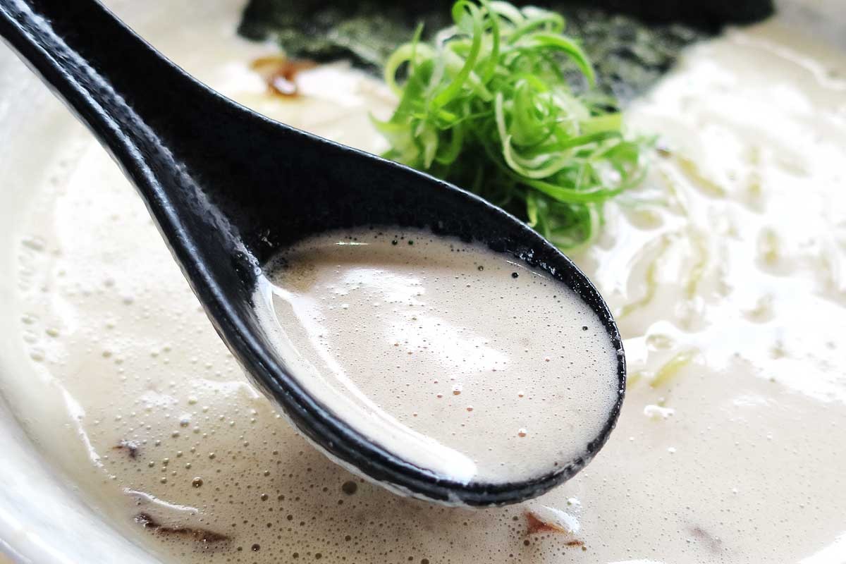 スープのかくはんによる細かい泡と醤油ダレが調和。クリーミーでカドのない味わい