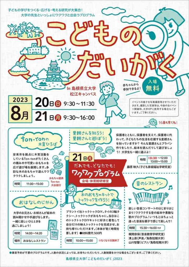 | 詳細 | 【一部プログラムは要予約】こどものだいがく2023(島根県松江市)の開催情報 |