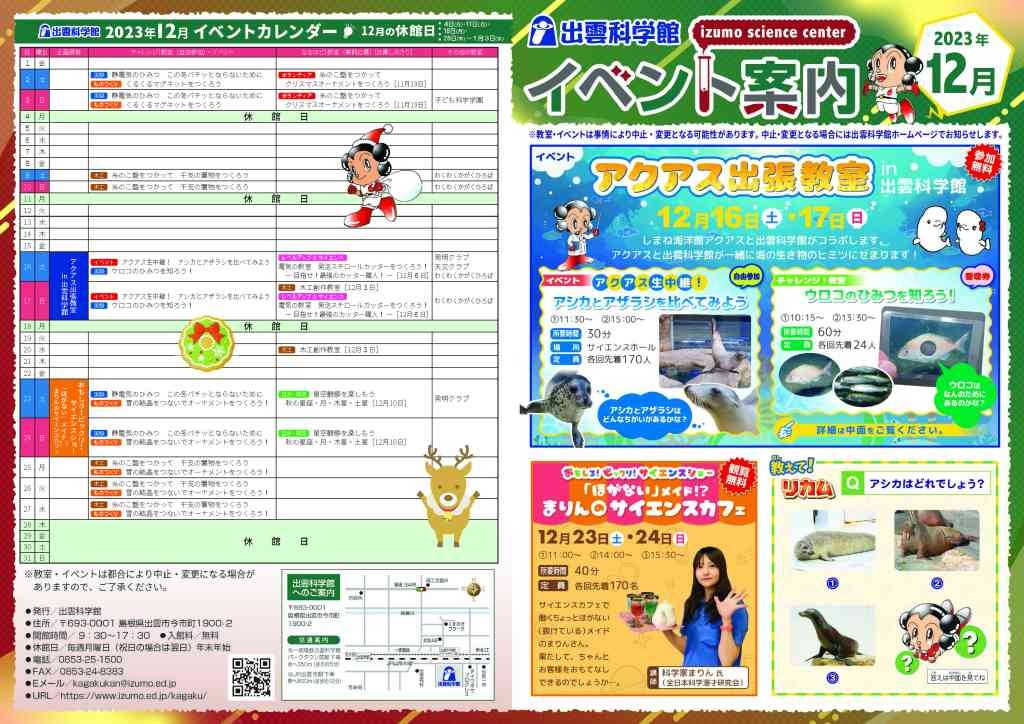 | ざっくり内容 | しまね海洋館アクアスと出雲科学館がコラボ! アクアスと出雲科学館が一緒に海の生き物のヒミツにせまります! |