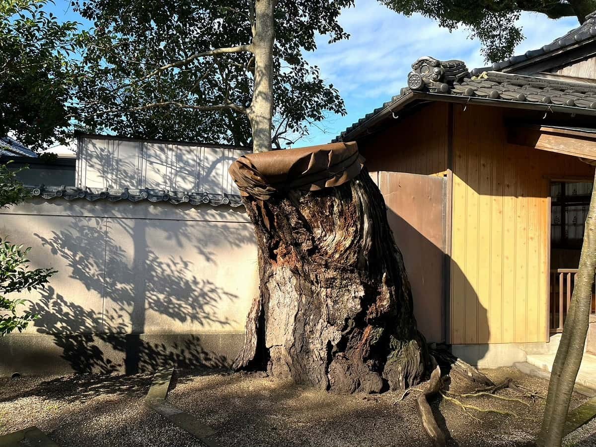 境内はキレイに整備されていて、立派な木々に囲まれています。端の方に合った、ひと際大きい木の幹からも歴史を感じますね。