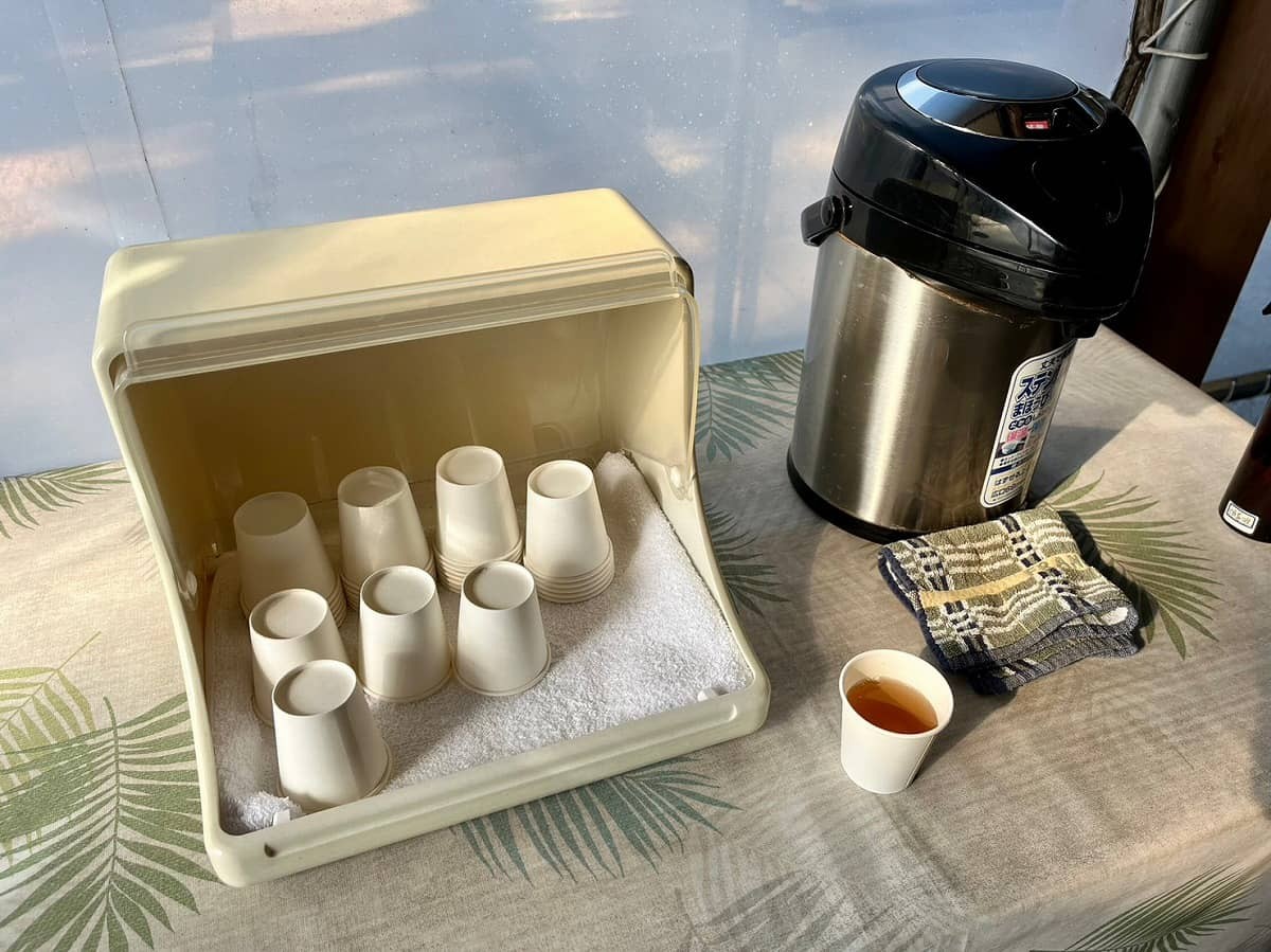 社務所には、参拝者のためにお茶も用意されていました。こういうちょっとした気遣いってうれしいですよね。