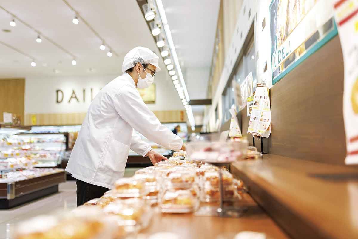 カツやコロッケなどの総菜、弁当、寿司などを店内調理し、出来立てを品出しするデリカ部門。黒川さんは、お好み焼きなど鉄板料理のチーフとして活躍中です。「お客様が直接口に運ぶものを作っているので、味、見た目、安全性に気を付けるよう心がけています」。