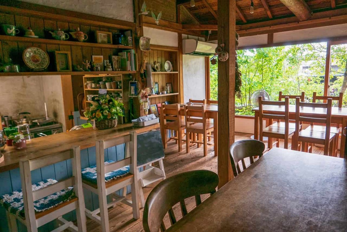 店内には、梁や柱を昔のまま残しつつ、随所にかわいらしい雑貨が飾られています。