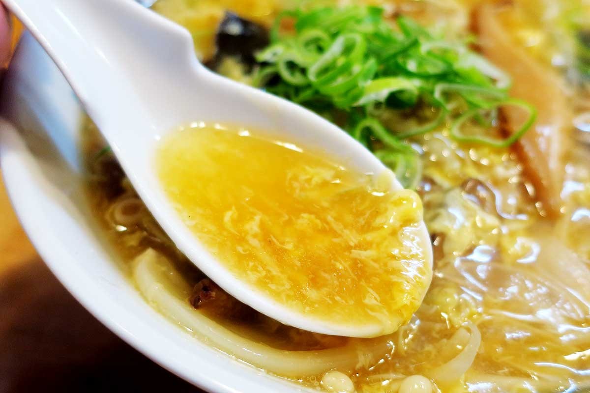 トロトロあんに溶き玉子、シイタケ、ナメ茸、キクラゲと、きのこがたっぷりと入る一杯です。