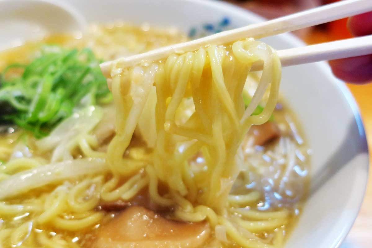 麺は中細のちぢれ麺。トロトロあんが絡み、時折、一緒に入るナメタケのシャキシャキ感がコントラストになって楽しい。
