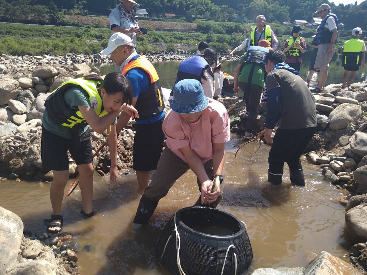 - 鮎つかみ取り体験のサポート