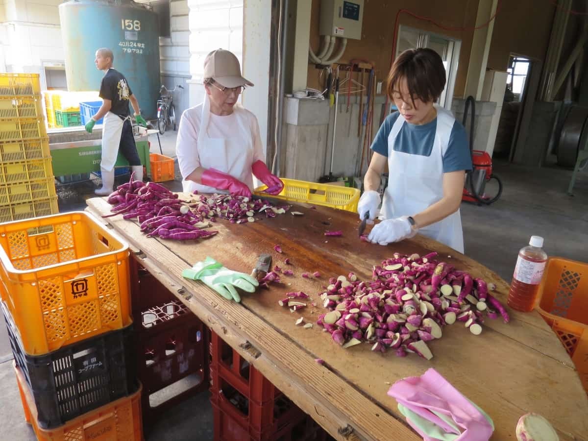 サツマイモの仕込み作業は2日間の予定で、初日の工程はこんな感じ。