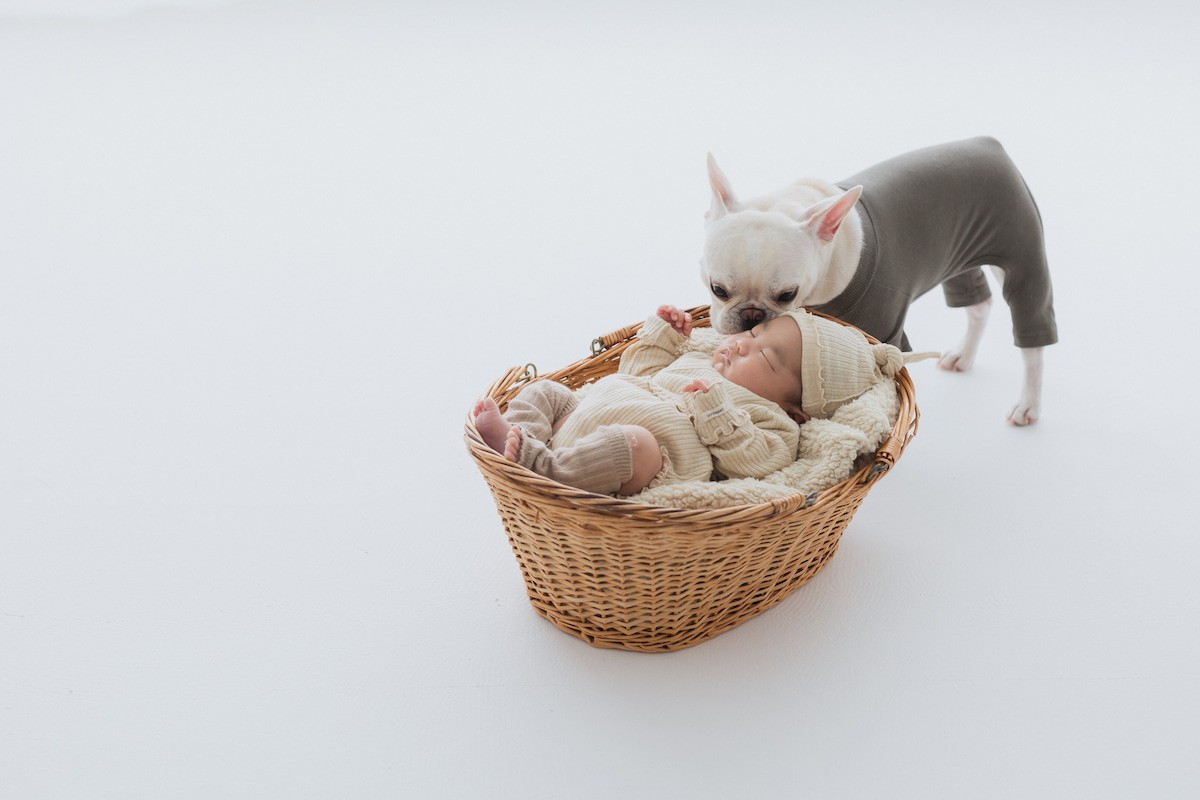 生まれたばかりの赤ちゃんとワンちゃん。なんて可愛すぎるコラボレーションも叶います。