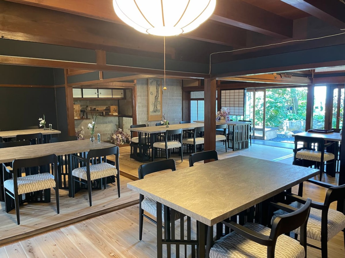 明治の面影を残す風情ある建物に、モダンなテーブルや椅子を配置。