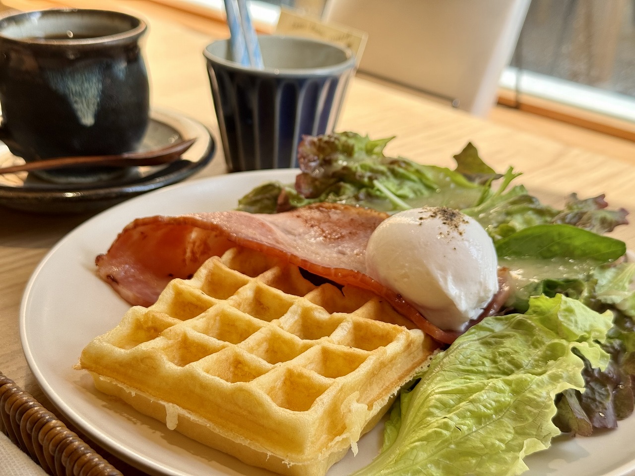 朝6時半からモーニング営業をしているカフェで、自家製ワッフルがとにかくおいしいんです!