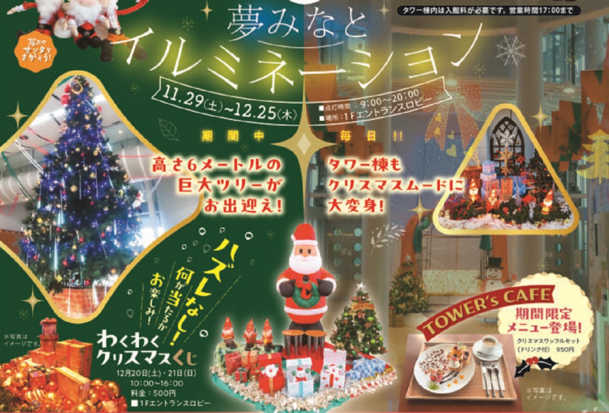 ざっくり内容 高さ6メートルの巨大ツリーがお出迎え!タワー棟内もクリスマスムードに大変身。