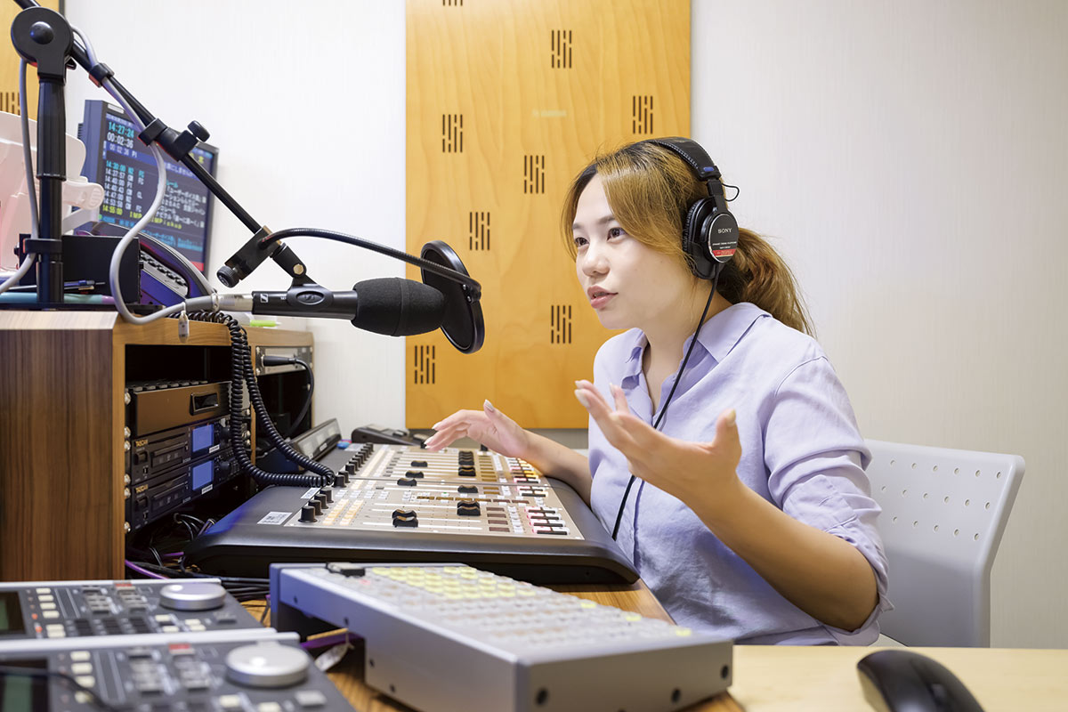 現在は冠番組「田村奏のBe Lucky!」をはじめとした番組パーソナリティのほか、ディレクターとして番組制作にも関わるなど、多彩な役割を担っています。「仕事は大変なこともありますが、多くのアーティストと一緒に仕事をしたりインタビューをしたりと、直接関わることができるのはこの仕事の特権です」。と笑顔で話します。