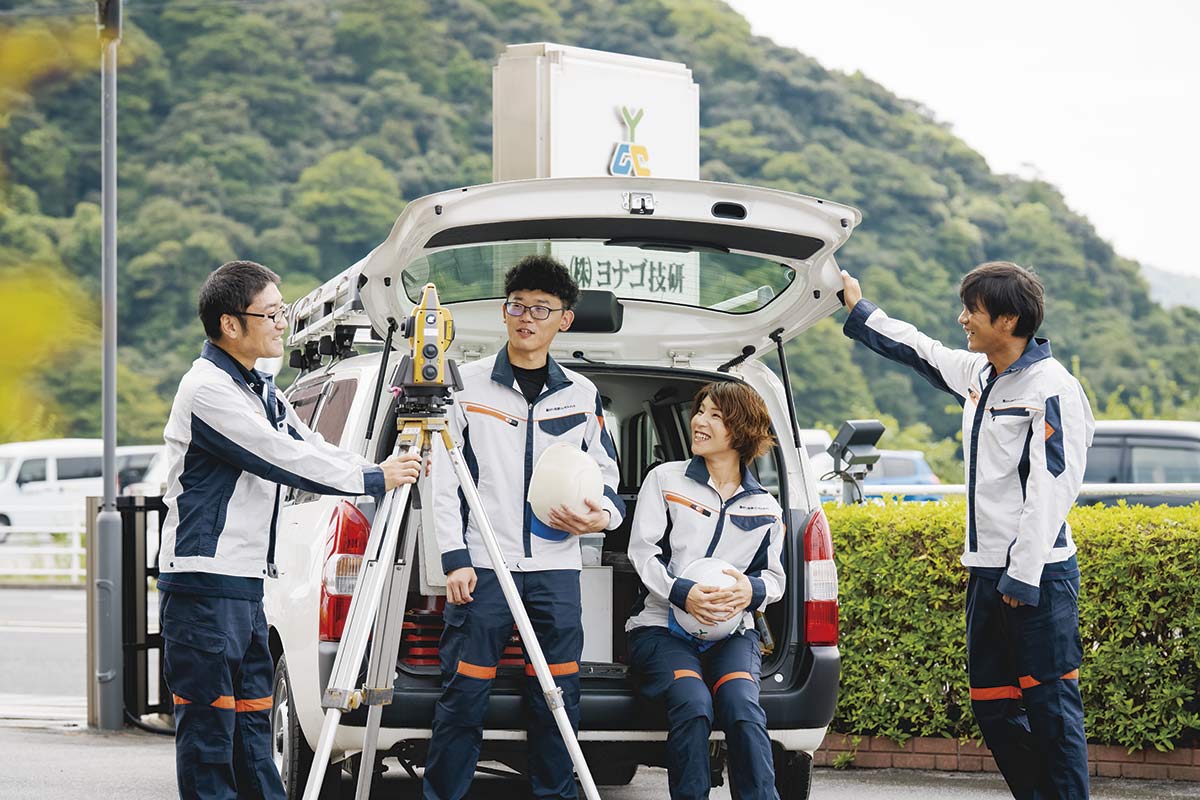 「地域の皆様が、より安心安全で快適にインフラを利用できるようにする仕事です。建築物のように目には見えにくいものですが、縁の下の力持ちとしてまちづくりを支えていいます」と語るのは《株式会社ヨナゴ技研コンサルタント》の大西幸人社長。