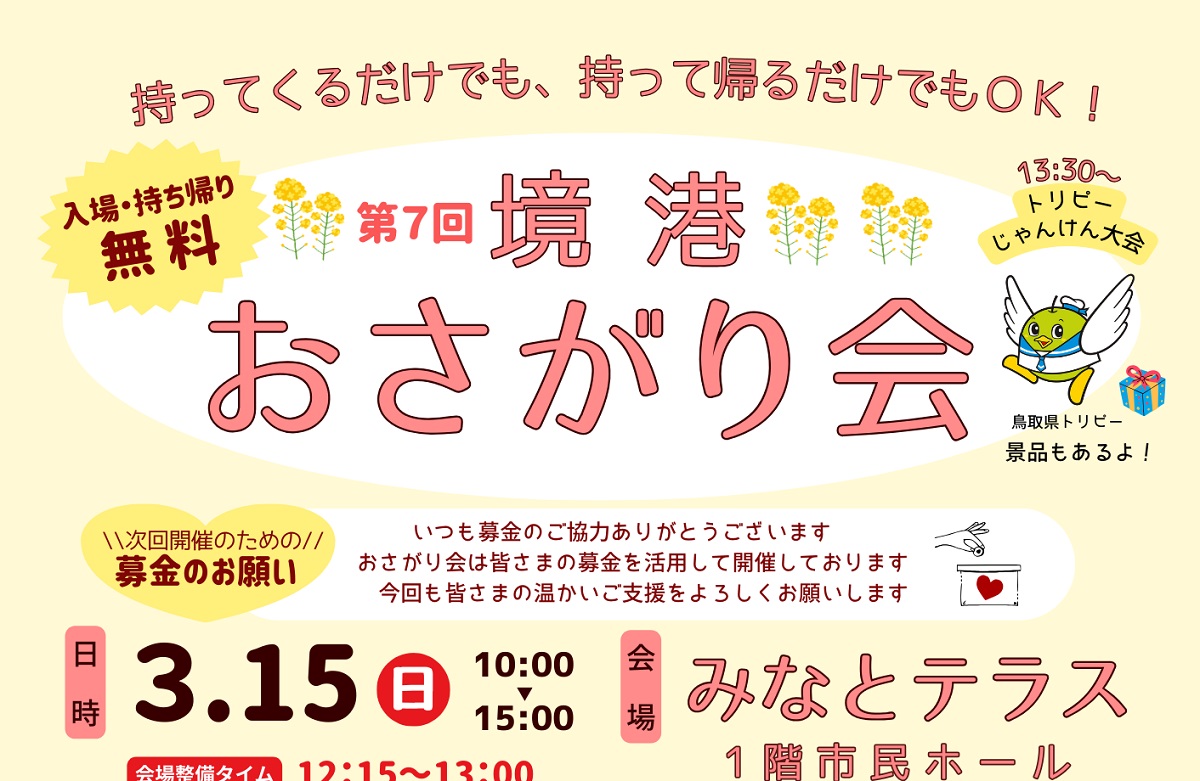 【米子・境港周辺】3/14(土)・15(日)のイベントまとめ。おさがり会、マルシェなど