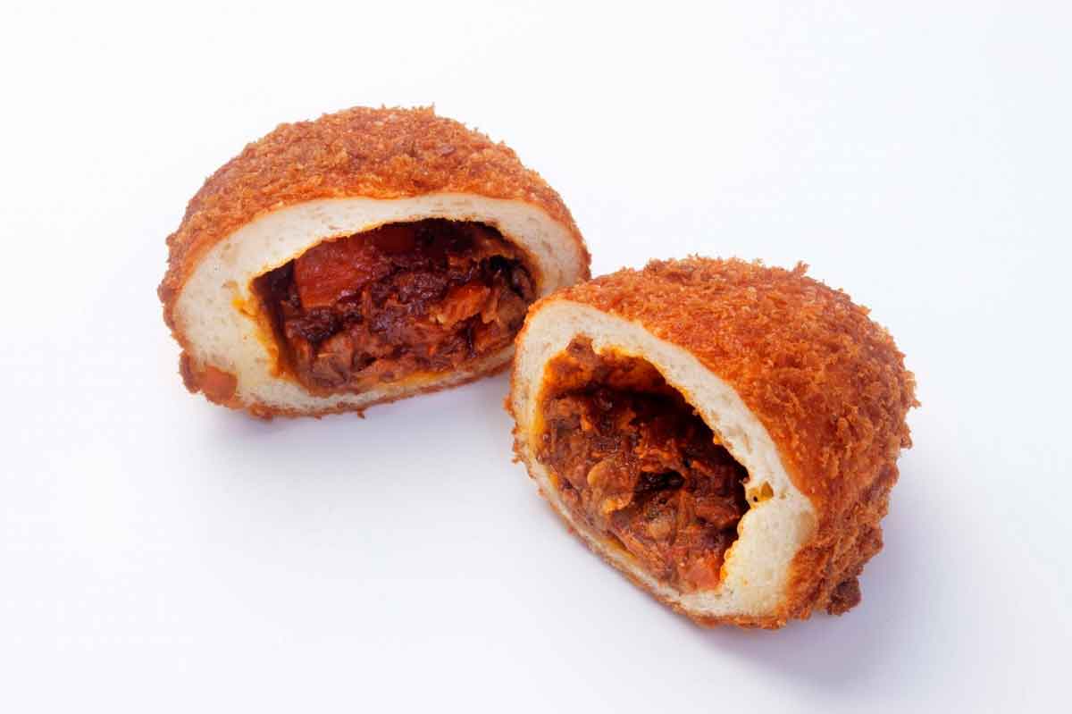 カリカリ食感の外側もおいしいですが、噛み切るときのあのモッチリとした食感も本当にたまりません。パンの中には、野菜と牛肉をじっくり煮込んだマイルドなカレーがたっぷり。コクを出すためにワインでしっかり煮込んでいるそうで、かなり本格的な味わい。あふれ出す肉汁のうま味、豊かなスパイスの香り、次々と顔を出すゴロゴロとした牛肉……(やばい、想像しただけでたまらん)。