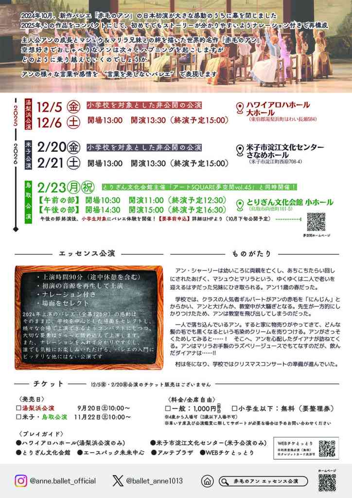 新作バレエ「赤毛のアン」エッセンス公演(鳥取県米子市)の開催情報