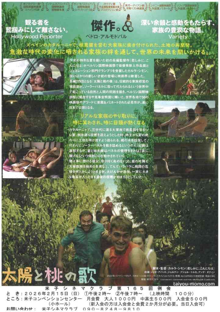 米子シネマクラブ例会「太陽と桃の歌」上映会(鳥取県米子市)の開催情報