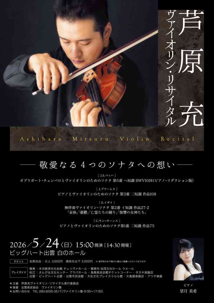 芦原 充 ヴァイオリン・リサイタル(島根県出雲市)の開催情報