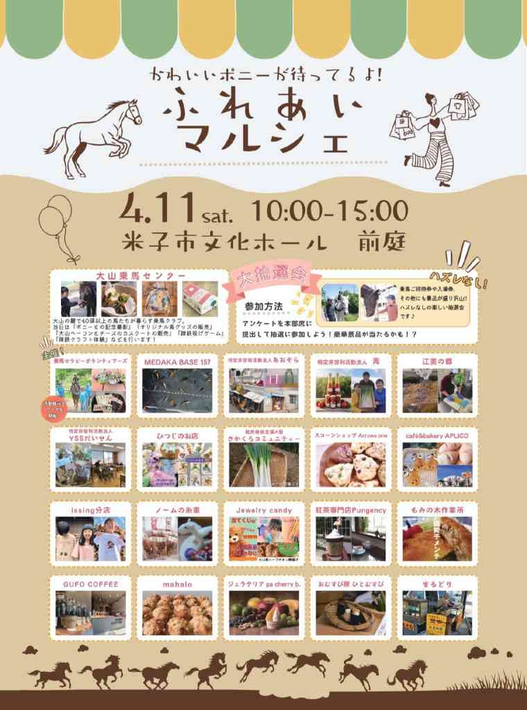 また、会場前庭ではポニーとのふれあいコーナーをはじめ、福祉施設を中心としたマルシェやフリーマーケットを開催する。