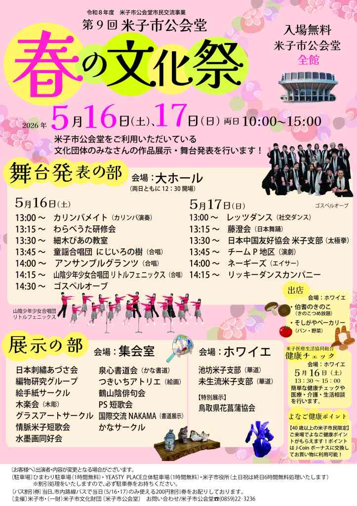 米子市公会堂を利用している文化団体の作品展示・舞台発表を行う。